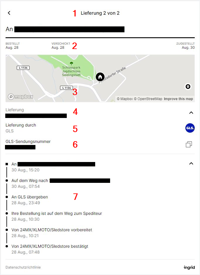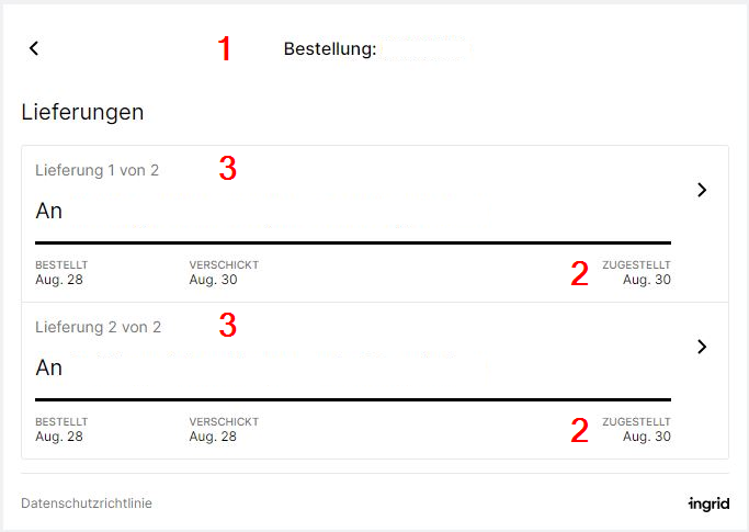 *Wenn mehrere Pakete verschickt wurden, erscheint diese Seite zuerst und zeigt die Details zur Sendungsverfolgung für jedes Paket an: