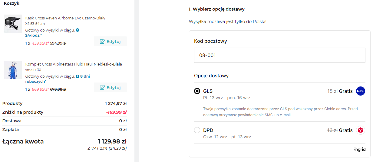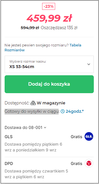 Wtedy zobaczysz dostępne metody dostawy oraz oszacowaną datę dostawy w zależności od twojej lokalizacji.